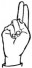 На ћирилици написано ПРЕДРАГ ГУЖВИЋ састоји се из 13 слова [?]. Исписано ћириличном једноручном азбуком за глувонеме: